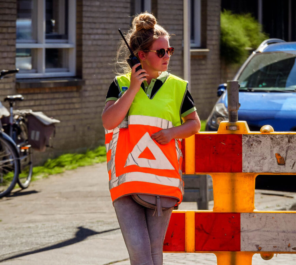 Onze verkeersregelaars zijn volledig opgeleid en gecertificeerd en werken volgens de geldende wet- en regelgeving. Zij handelen professioneel, duidelijk en klantgericht. -